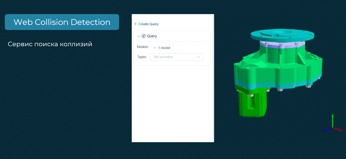 Еще один сервис (Web Collision Detection на схеме) реализует функцию поиска коллизий (рис. 15). Внутри он взаимодействует с десктопным модулем C3D Collision Detection и, по сути, представляет обертку для работы модуля в веб-среде. Сервис уже работает, однако предстоят дополнительные этапы тестирования и отладки.